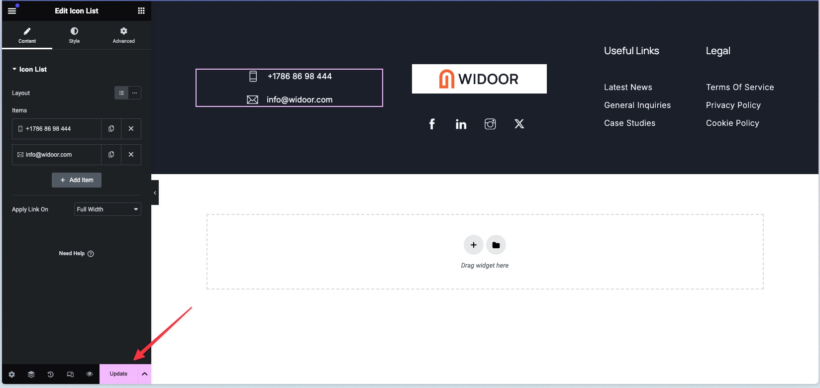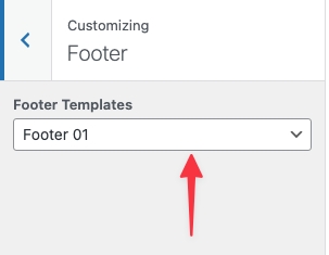 After setting up the footer layout, save the changes by clicking the Update Button, then Appearance → Customize → Footer, and select the New Page you added.